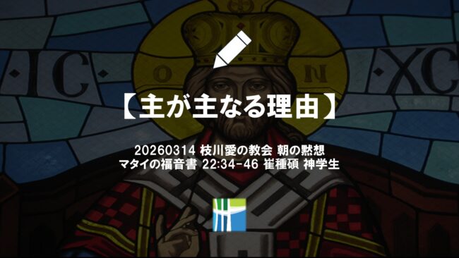 マタイの福音書 黙想【主が主なる理由】20260314(土) 枝川愛の教会 崔種碩 神学生