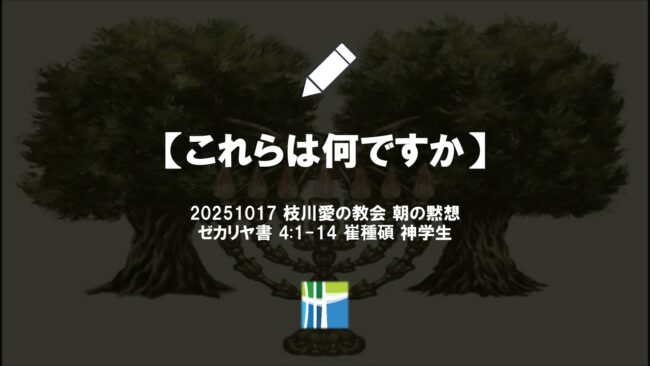 ゼカリヤ 1:7~21 1:7 ダレイオスの第二年、シェバテの月である第十一の月の二十四日に、イドの子ベレクヤの子、預言者ゼカリヤに、次のような主のことばがあった。 1:8 夜、私が見ると、なんと、一人の人が赤い馬に乗っていた。その人は、谷底にあるミルトスの木の間に立っていた。そのうしろには、赤毛や栗毛や白い馬がいた。 1:9 私は「主よ、これらの馬は何ですか」と尋ねた。すると、私と話していた御使いが「これらが何なのか、あなたに示そう」と言った。 1:10 すると、ミルトスの木の間に立っていた人が答えた。「これらは、地を行き巡るために主が遣わされた者たちだ。」 1:11 すると彼らは、ミルトスの木の間に立っている主の使いに答えた。「私たちは地を行き巡りましたが、まさに全地は安らかで穏やかでした。」 1:12 それに答えて主の使いは言った。「万軍の主よ。いつまで、あなたはエルサレムとユダの町々に、あわれみを施されないのですか。あなたが憤られて七十年になります。」 1:13 すると主は、私と話していた御使いに、恵みのことば、慰めのことばで答えられた。 1:14 私と話していた御使いは私に言った。「叫んで言え。『万軍の主はこう言われる。わたしは、エルサレムとシオンを、ねたむほど激しく愛した。 1:15 しかし、わたしは大いに怒る。安逸を貪っている国々に対して。わたしが少ししか怒らないでいると、彼らは欲するままに悪事を行った。』 1:16 それゆえ、主はこう言われる。『わたしは、あわれみをもってエルサレムに帰る。そこにわたしの宮が建て直される。──万軍の主のことば──測り縄がエルサレムの上に張られる。』 1:17 もう一度叫んで言え。『万軍の主はこう言われる。わたしの町々には、再び良いものが満ちあふれ、主は再びシオンを慰め、再びエルサレムを選ぶ。』」 1:18 私が目を上げて見ると、なんと、四つの角があった。 1:19 私と話していた御使いに「これらは何ですか」と尋ねると、彼は言った。「これらは、ユダとイスラエルとエルサレムを散らした角だ。」 1:20 そのとき、主は四人の職人を私に見せてくださった。 1:21 私が「この人たちは、何をしに来たのですか」と尋ねると、主は次のように言われた。「これらはユダを散らして、だれにも頭をもたげさせなかったあの角だ。この人たちは、これらの角を震え上がらせるために、やって来たのだ。ユダの地を散らそうと角をもたげる国々の角を打ち滅ぼすためだ。」 イスラエルの民がバビロン捕囚から帰ってすでに数十年が過ぎていた。神殿の基礎は据えられていたが、人々の信仰は冷め、エルサレムの再建は依然として未完成の廃墟のままであった。主は預言者ゼカリヤを通してこう語られた。 「わたしに立ち帰れ。万軍の主の御告げ。そうすれば、わたしもあなたがたに立ち帰ろう。」主の御心はすでに民に向かっており、人々が目を覚ますならば再び主に向かうことができた。本日の本文は、その約束が歴史の中でどのように実現するかを示している。立ち帰れと招かれた神ご自身が、今や自ら立ち帰られる物語である。 ゼカリヤは夜の中で幻を見た。紅い馬、栗毛の馬、白い馬に乗る者たちがミルトスの木の谷間に立っていた。彼らは神の使いであり、全地を巡って報告していた。「全地は静かで穏やかです」と。確かに帝国の政治的な状況は安定していたかもしれない。しかし、神の都エルサレムは依然として崩れていた。そこで天使が神に問う。「いつまでエルサレムをあわれまれないのですか。」この問いは不平ではなく、沈黙の中で神を信頼して待つ祈りであった。 その問いに対して、神は答えられる。「わたしはエルサレムのためにねたみ、シオンのために激しく憤る。わたしは再びエルサレムに帰り、あわれみを注ぎ、わたしの家はその中に建てられるであろう。」神は「民が立ち帰れば、わたしも帰る」と言われたが、今や「わたしが先に帰る」と言われる。回復は人間の決意から始まるのではない。すべての回復の出発点は神ご自身である。人間の信仰がどれほど大きくても、神の愛に先行することはできない。神のあわれみがまず流れるからこそ、人の悔い改めが目覚める。信仰の主導権は常に神にある。 ゼカリヤはさらにもう一つの幻を見る。四つの角が現れ、それに続いて四人の職人が現れた。角はイスラエルを圧迫した諸帝国――アッシリア、バビロン、ペルシャ、ギリシア――を象徴している。しかし神は、その角を打ち砕くために職人たちを遣わされる。彼らは単なる技術者ではない。神が救いの道具として立てられた人々である。彼らの手によって、傲慢な帝国は砕かれ、崩れた共同体が再び建て直される。回復は職人の繊細な手によって緻密に進められる。神はエルサレムの石を直接積まれはしないが、職人を呼び、その手を通して世の中に働かれる。神はいつも人を通して御業を行われる。 最初の幻は、立ち帰られた神の「心」であり、第二の幻は、その心